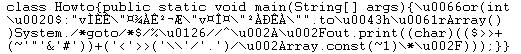 The above code is shown as an image to make sure that special characters are rendered correctly. To see the actual code, download the source : Howto.java.