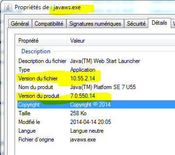 File or product version information can be embedded in an executable file as special attributes. To retrieve these infos from Java, we can use JNA. This HowTo will extract the file and product versions of javaws.exe. On my installation, the values are :
